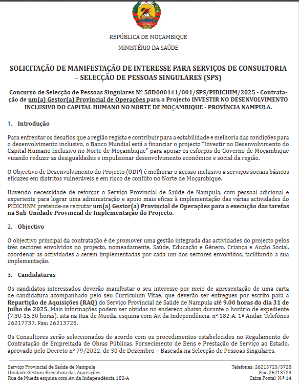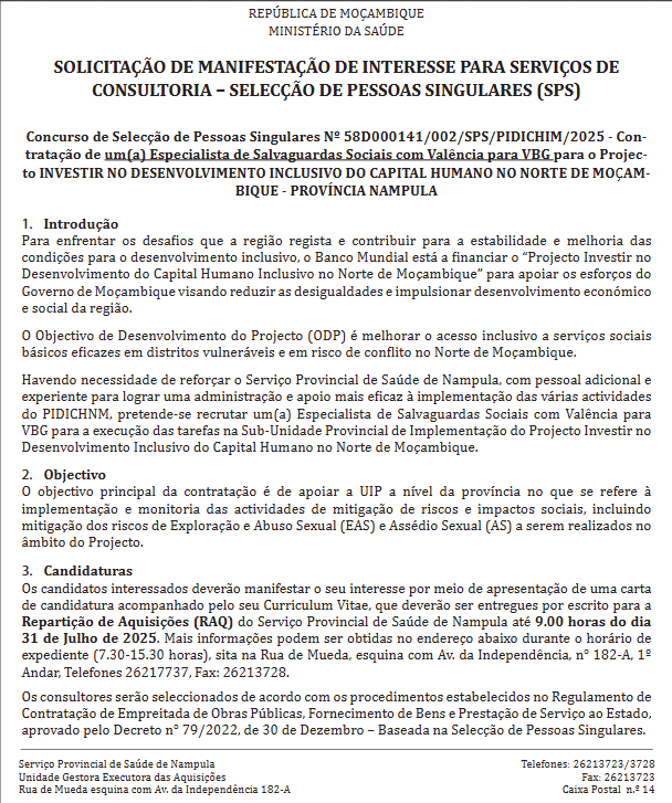 Contratação de Um(a) Especialista de Salvaguardas Sociais Co…