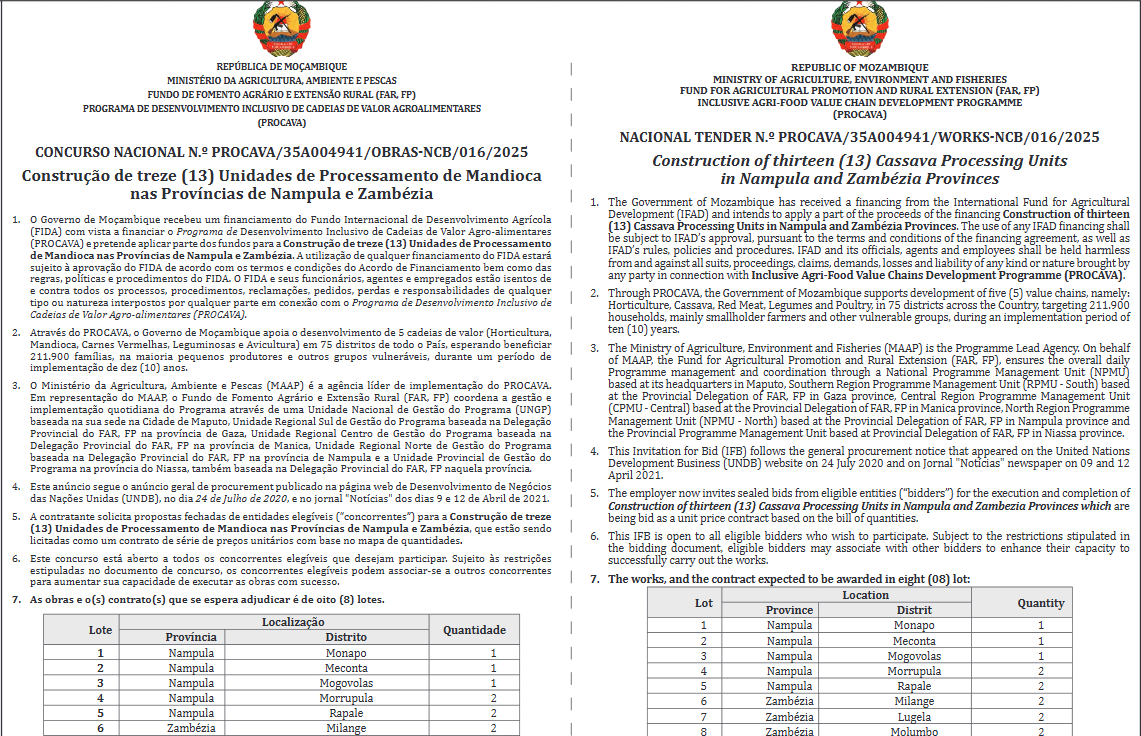 The post Construção de Treze Unidades de Processamento de mandioca Nas Províncias de Nampula e Zambézia appeared first on Diário Económico.