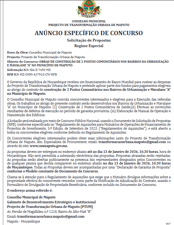 • Obras de Construção de Dois Postos Comunitários Nos Bairros …