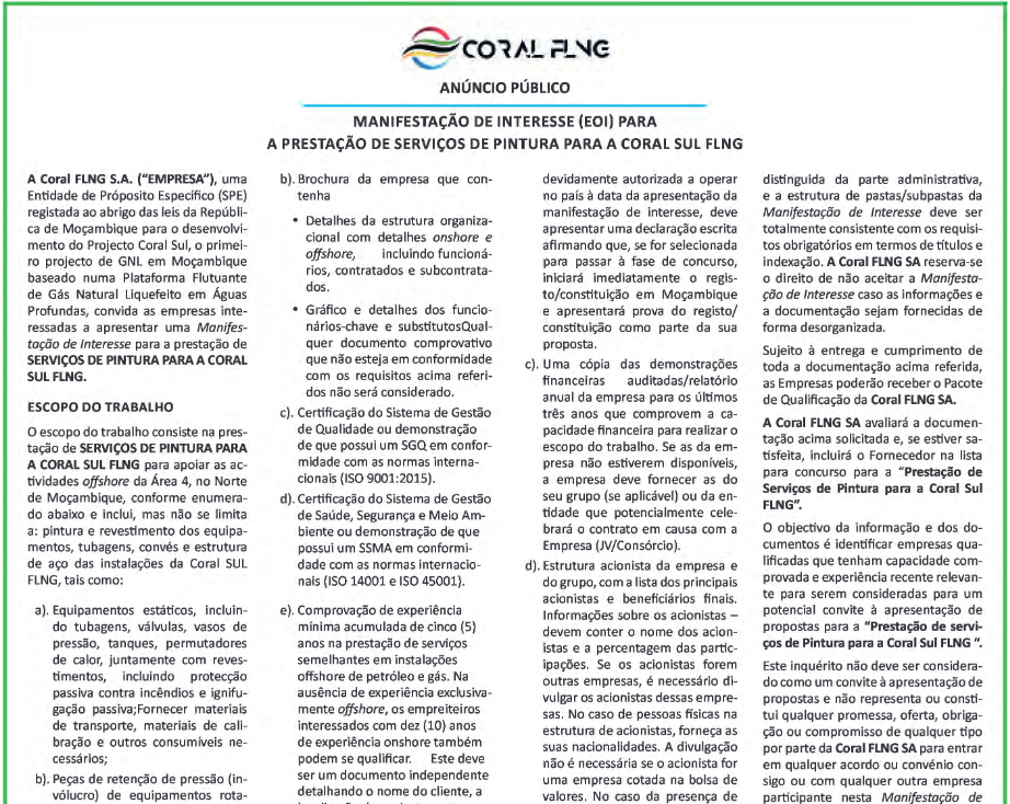 Prestação de Serviços de Pintura Para a Coral Sul FLNG • Diá…