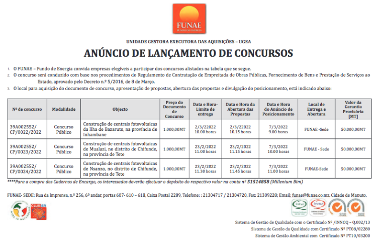 Entidade: Fundo de Energia | Email: funae@funae.co.mz