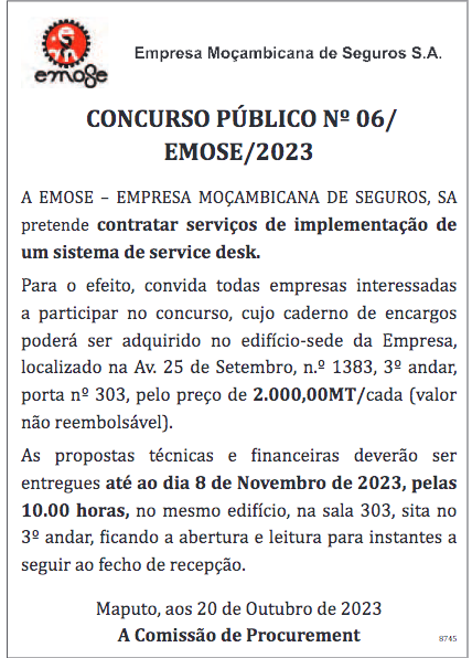 Entidade: EMOSE | Email: admin@sabetudo.co.mz