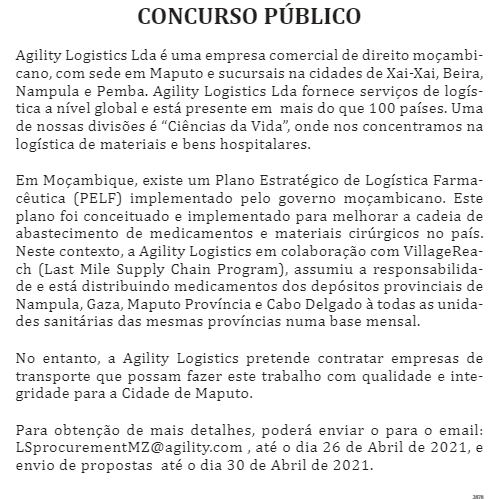 Entidade: Mozal | Email: lsprocurmentmz@agility.com