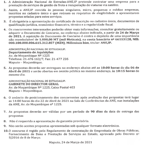 Publicado Por: Administração | Sector a Contratar: Prestação de Serviço | 135