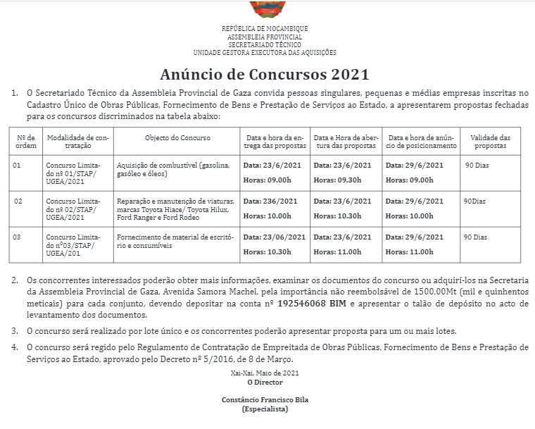 Publicado Por: Administração | Sector a Contratar: Fornecimento de Alimentos e produtos de Higiene | 304